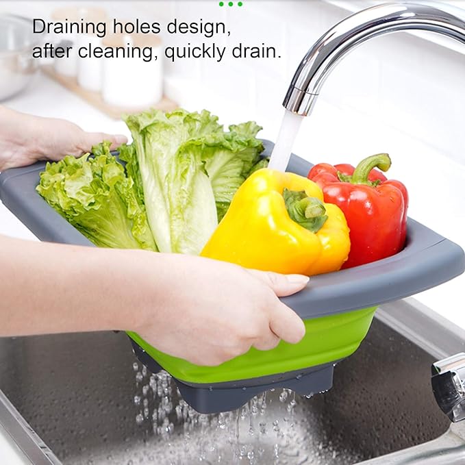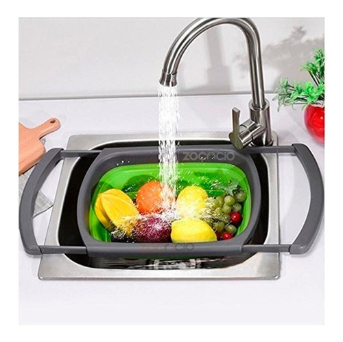 Colador plegable y extensible que se adapta al fregadero. Lava, escurre y seca frutas, verduras y pastas sin esfuerzo. Ideal para cocinas modernas que valoran el espacio, el orden y la higiene.