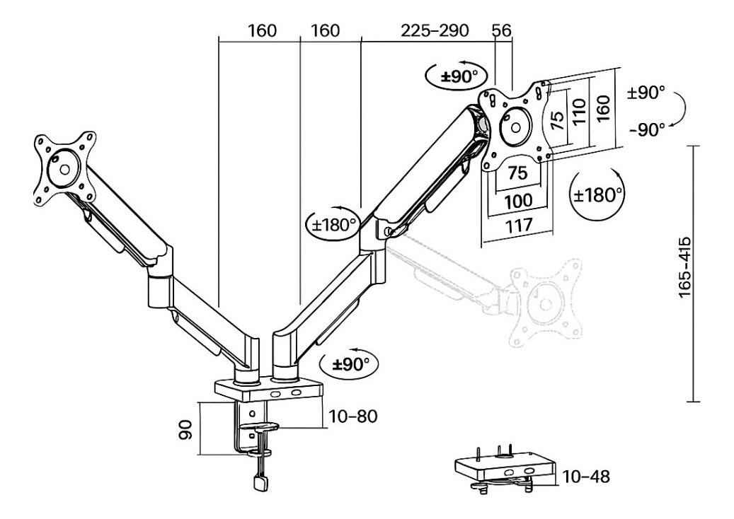 • Grosor de escritorio sugerido: Abrazadera: 10~80mm Ojal: 10~48mm