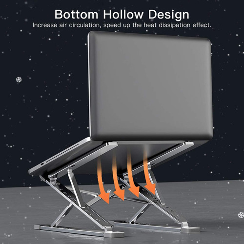• Bolsa de almacenamiento portátil y plegable: el soporte para portátil es hecho de aleación de aluminio, con un diseño plegable que es fácil de almacenar y compacto.